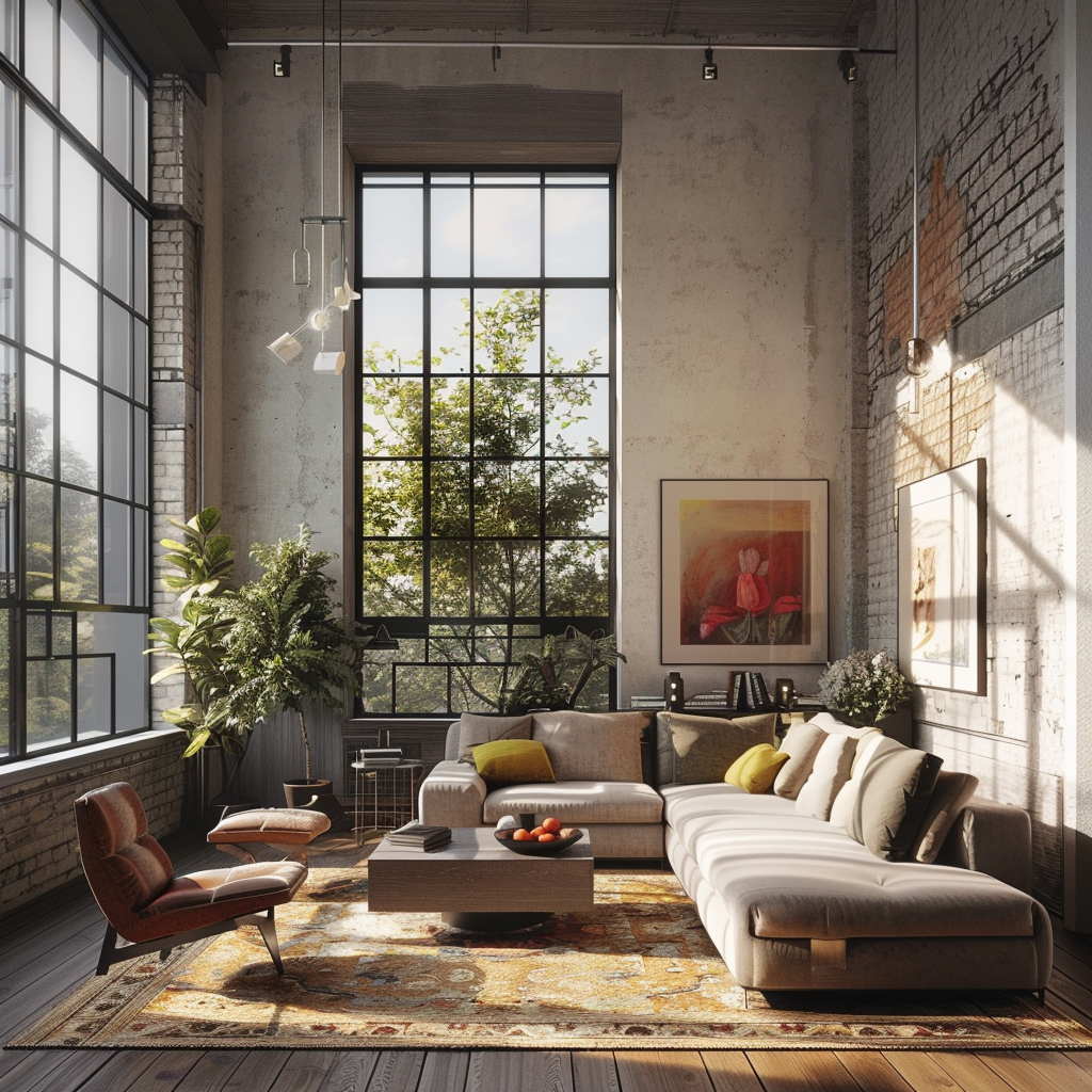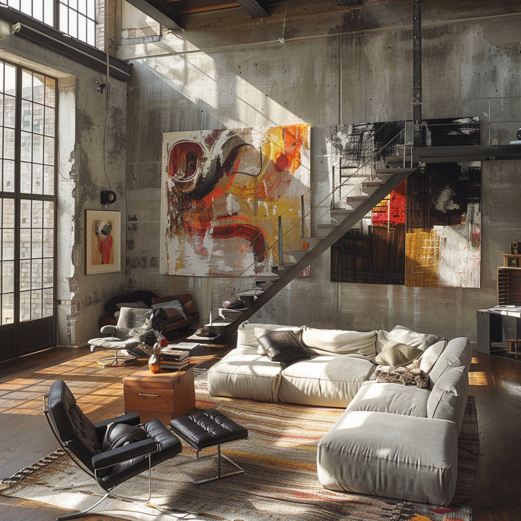 Łączenie mebli loftowych z różnymi stylami, tworzące kontrastowe i ciekawe połączenia. |
