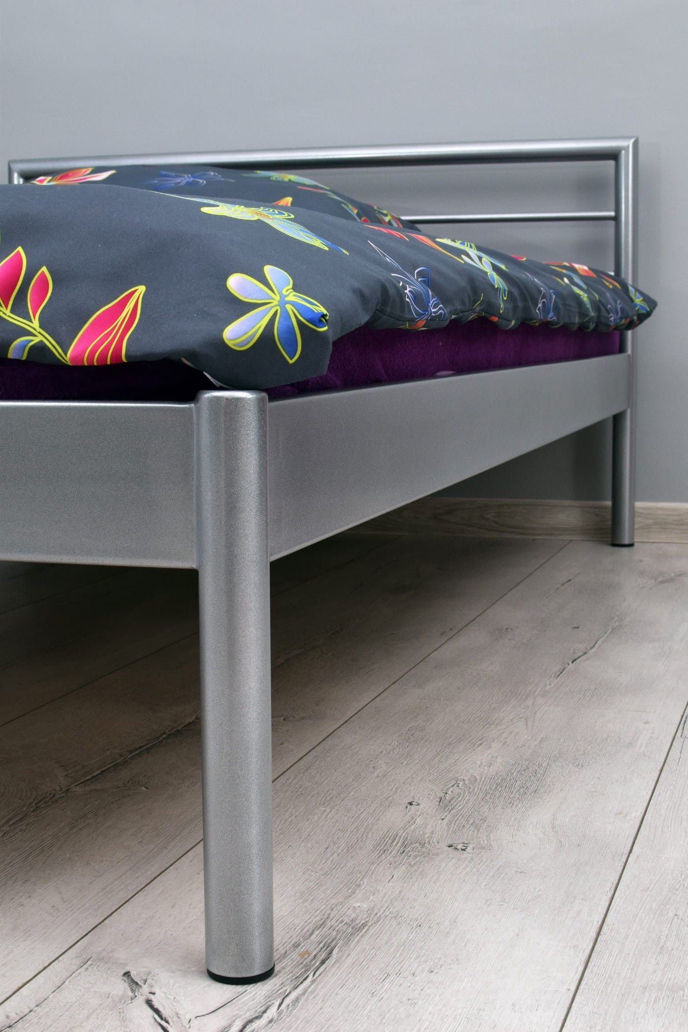 ANTUR Podwójne nowoczesne łóżko metalowe w kolorze srebrnym