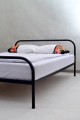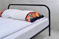 Na zdjęciu POPI Łóżko metalowe kolorze czarnym w rozmiarze 140x200 cm w kolorze czarnym na wąskich listwach bocznych.