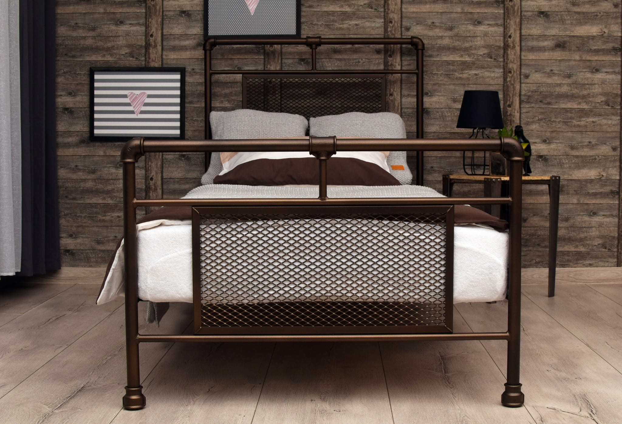 BELLUCZI Pojedyncze łóżko metalowe w stylu loftowym z elementów hydraulicznych posiada drewniany pracujący stelaż, który doskonale współgra z materacami sprężynowymi, kieszeniowymi i piankowymi.