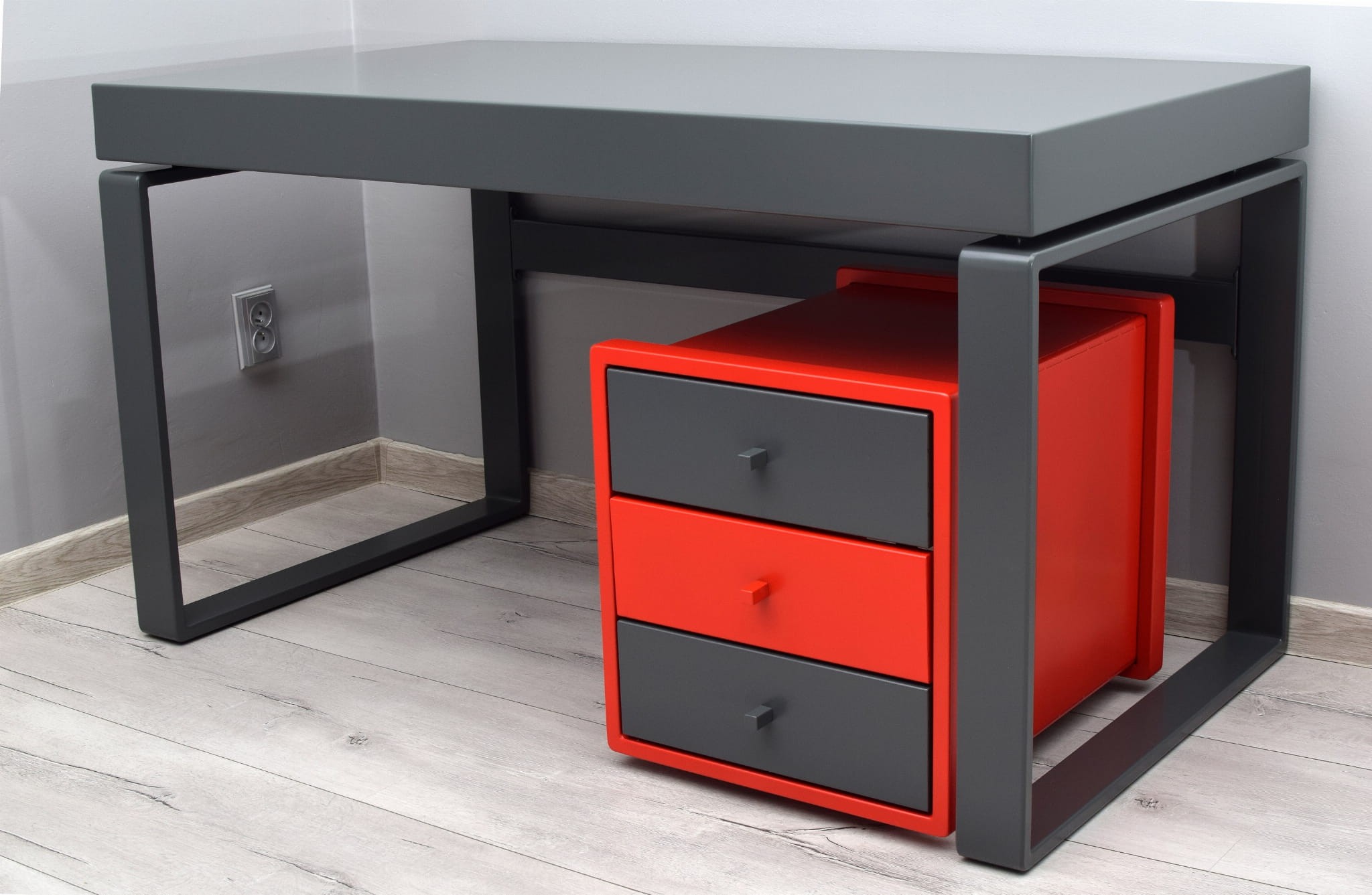 Nowoczesne, designerskie Biurko MetaloVe, pasuje do pokoju modnego nastolatka jak również do pracowni czy biura miłośnika dobrego stylu i designu. Masywne, solidne niezniszczalne biurko nadaje charakter wnętrzu.