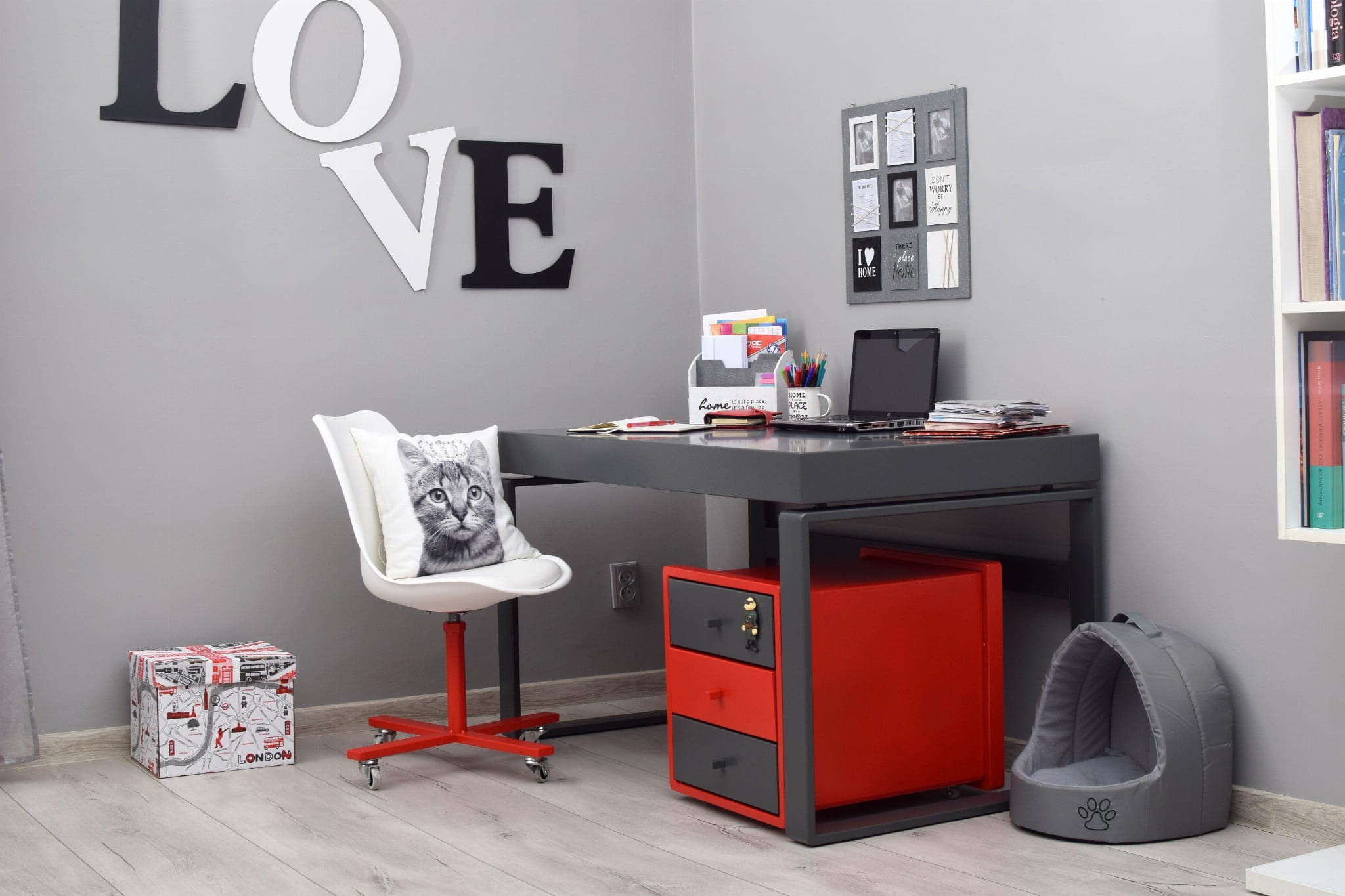 Użycie koloru czerwonego jest nieprzypadkowe, ponieważ kolor czerwony to ENERGIA, a praca w takiej przestrzeni dodaje zapału i wyzwala pierwiastek rywalizacji.