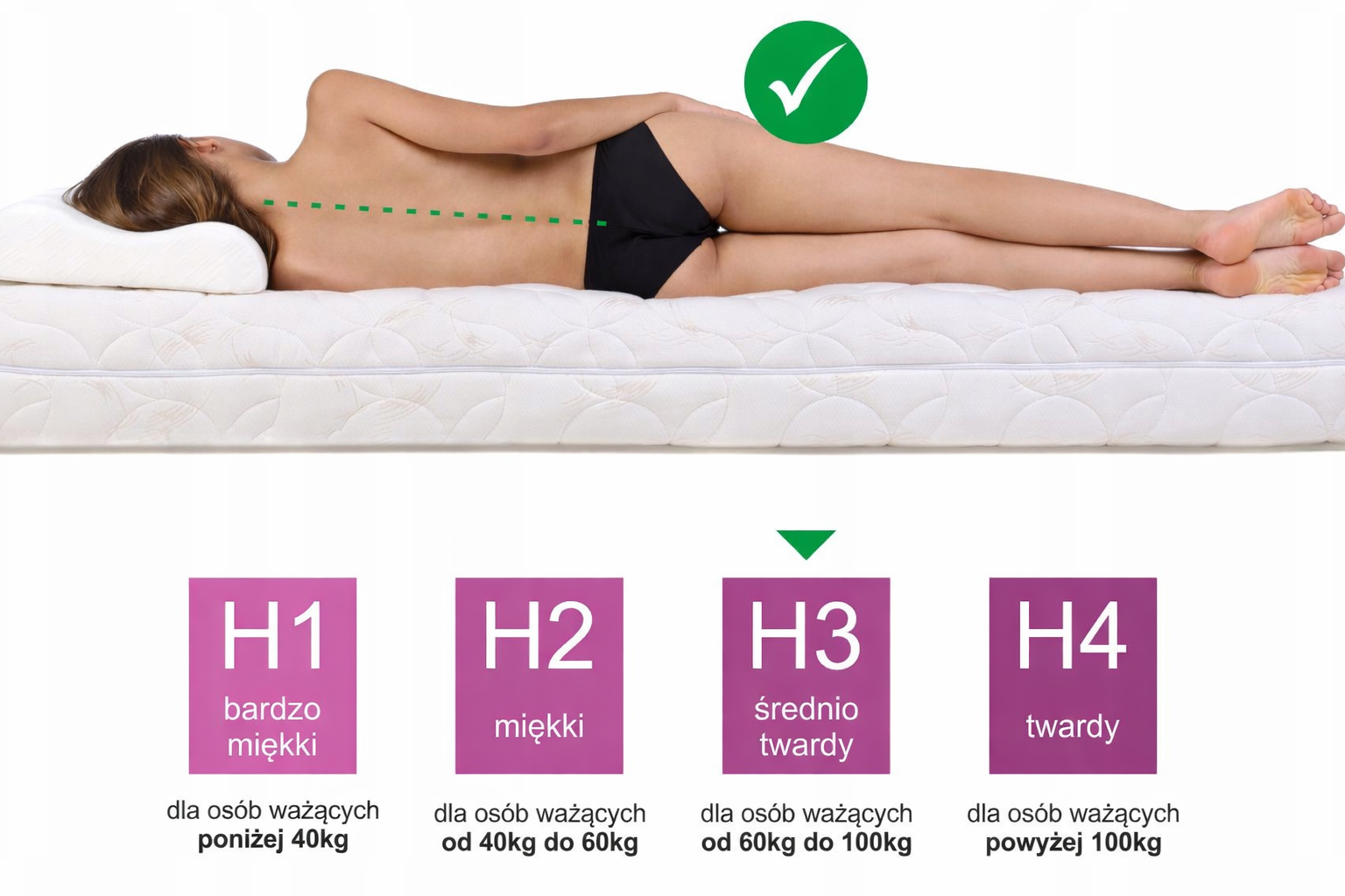 Materac można użytkować z obu stron. Jedna strona oferuje średnio twarde podparcie, druga – bardziej stabilne i twardsze.
