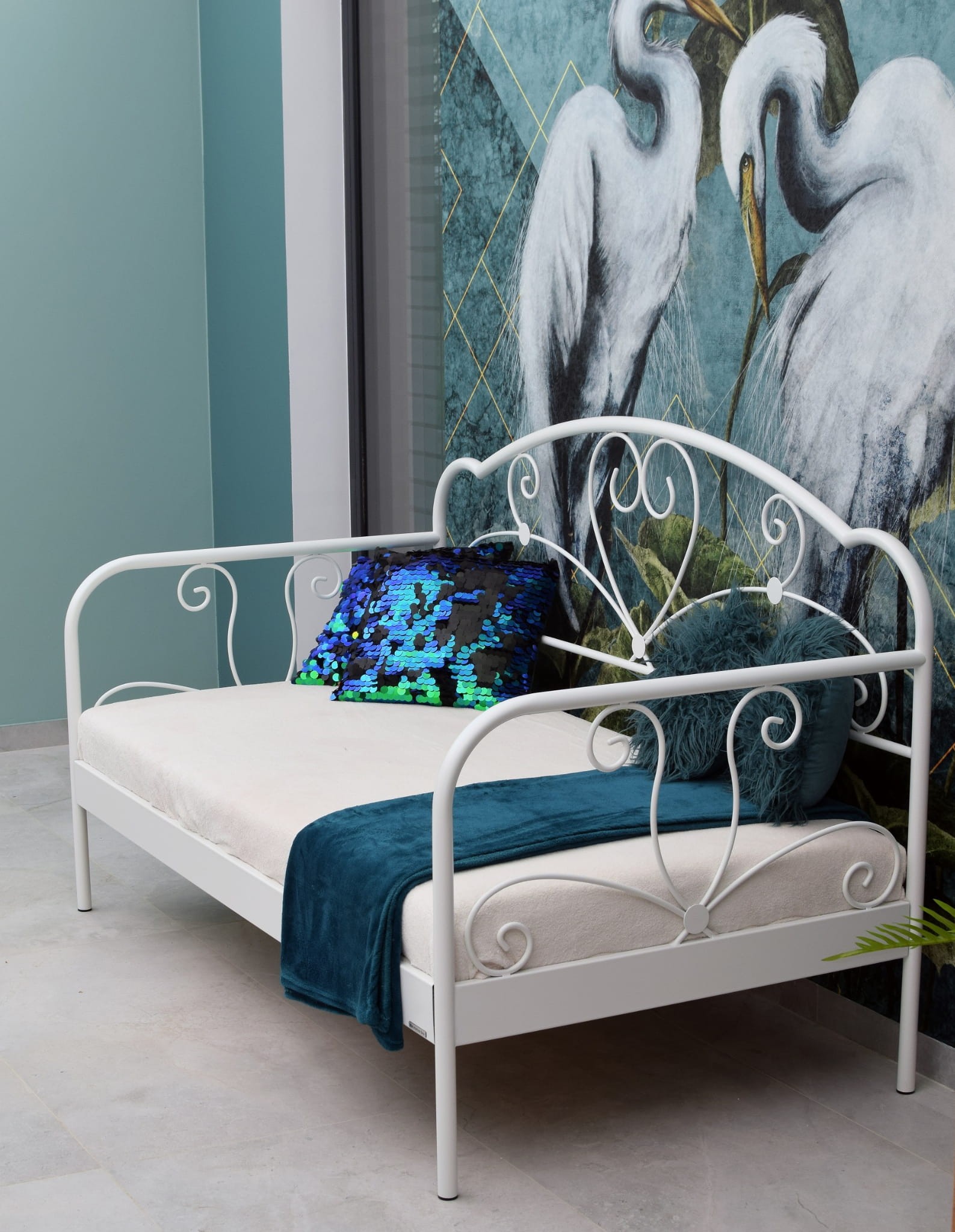 Ta kanapa to idealny dodatek do pokoju dziewczęcego, ubrana w kolorowe poduszki pięknie podkreśli charakter pokoju.