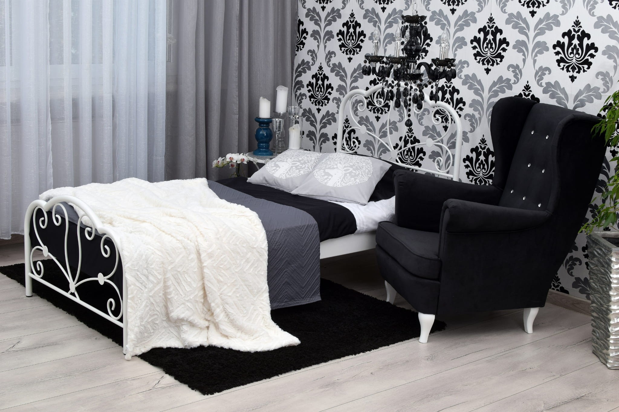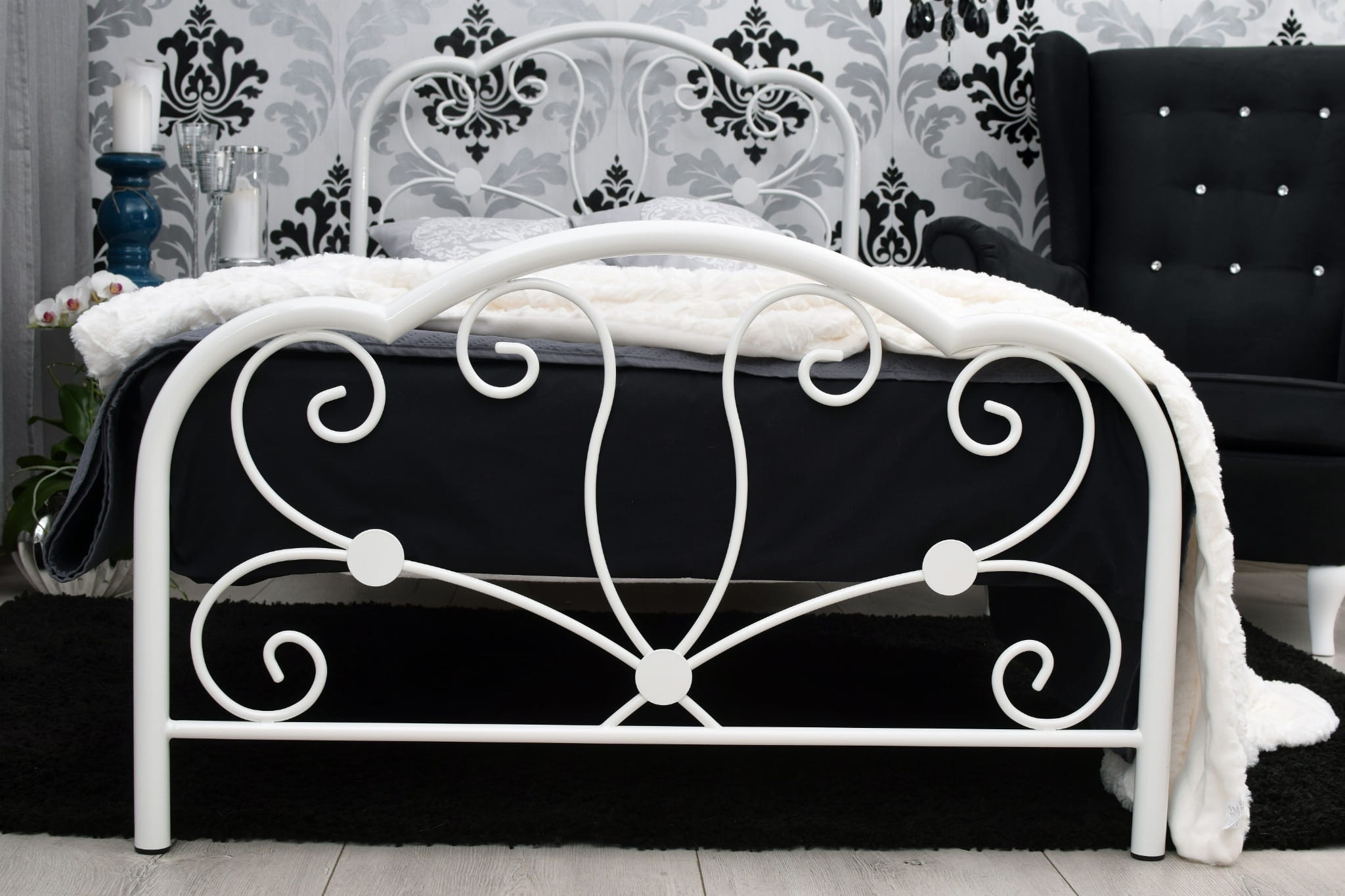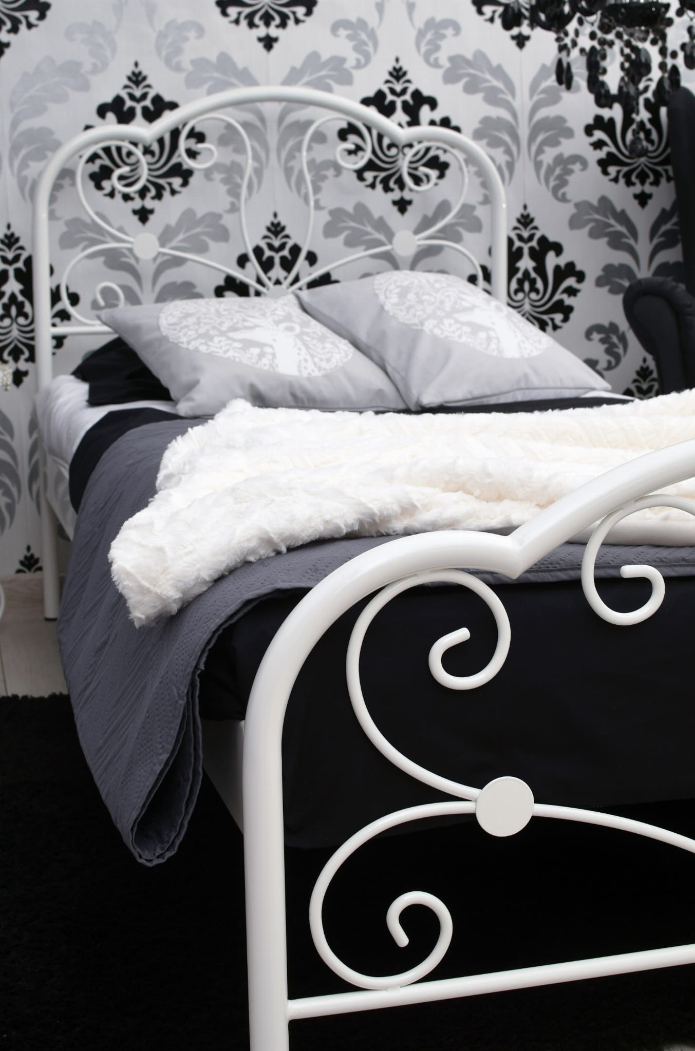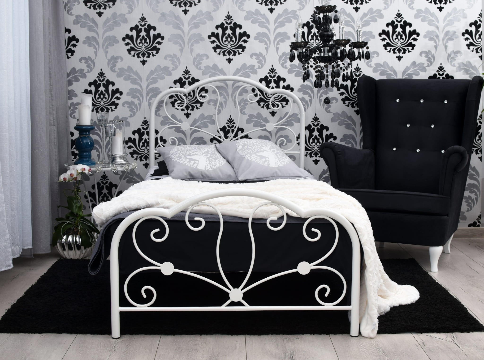 Łóżko Glossy tak jak Glamour doskonale prezentuję się w kolorze biały mat. Biel to czystość i ukojenie. Jej obecność we wnętrzu rozjaśni umysł i uspokoi myśli po trudach dnia codziennego. Biel w przypadku pojedynczego metalowego łóżka Glossy podkreśla również jego lekki kobiecy charakter. Pojedyncze metalowe łóżko Glossy to doskonały dodatek do sypialni niezależnej singielki, oraz bardzo kobiecej pewnej siebie nastolatki.