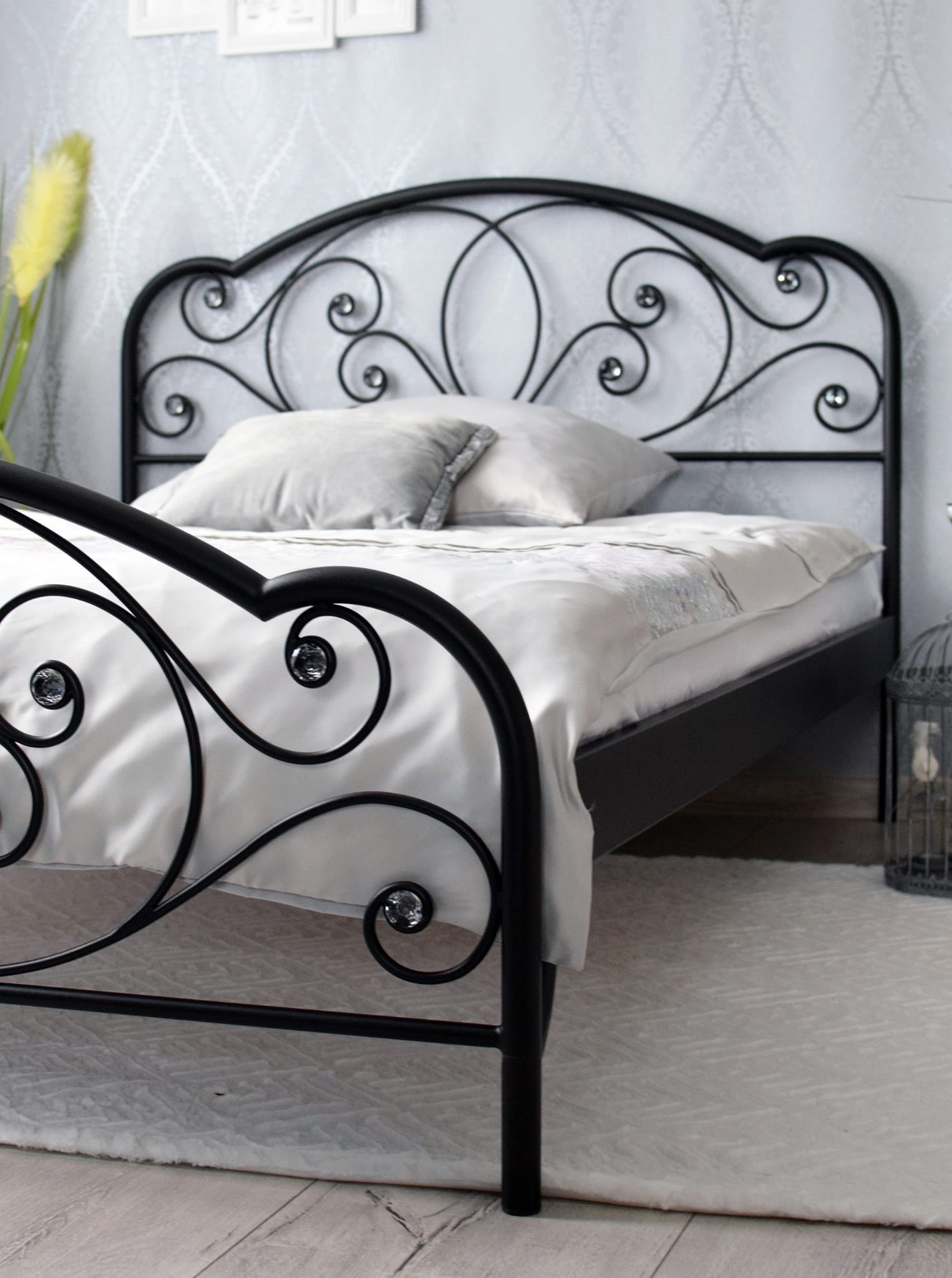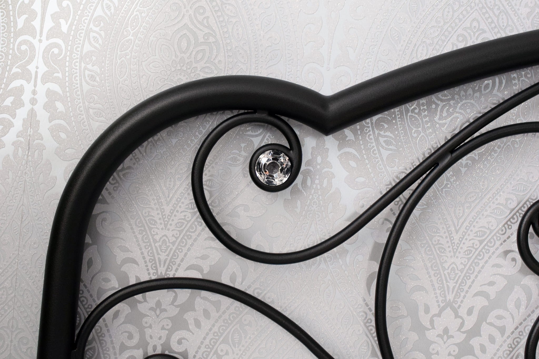 Kolejna odsłona przepięknego Łóżka metalowego Glamour. Tym razem w kolorze czarnym z pięknymi kamieniami Swarovskiego. To niezwykle eleganckie łóżko metalowe, doda charakter nie jednej sypialni. Kunszt metaloplastyki i blask kamieni to na prawdę niezwykłe i wyrafinowane połączenie.