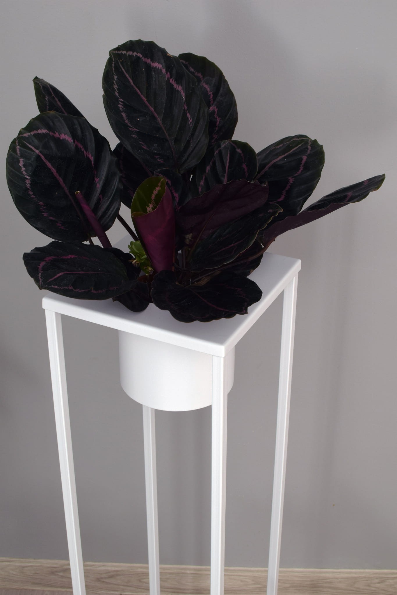 Na zdjęciu Kwietnik wysoki w kolorze grafitowym i białym