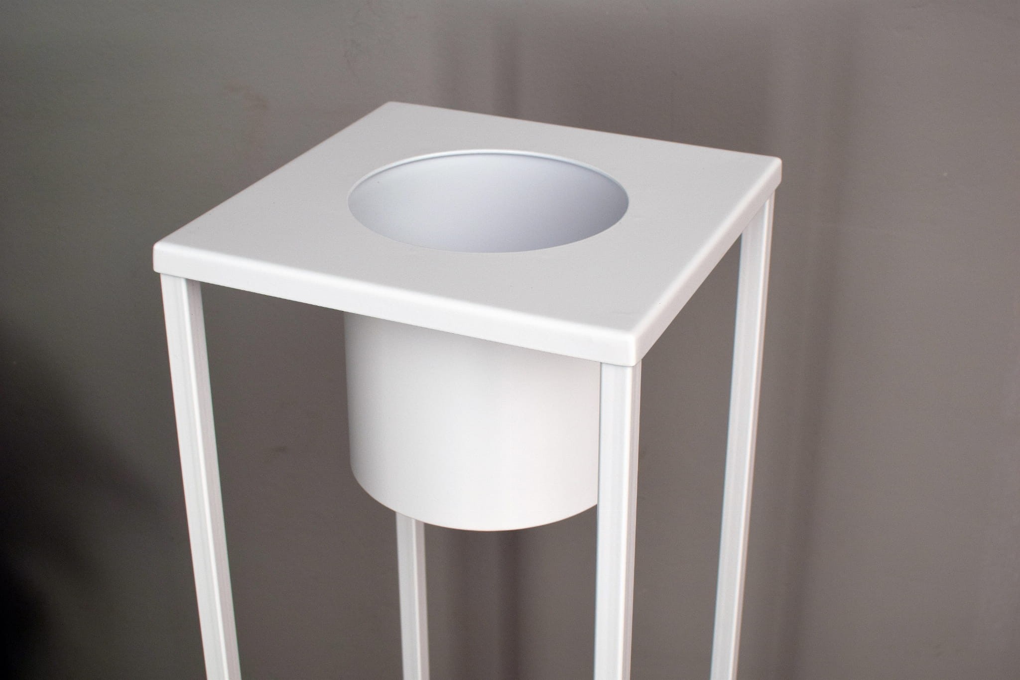 Kwietnik, wykonany jest z wysoko gatunkowego metalu, malowany proszkowo w każdym kolorze dostępnym w palecie kolorów Ral, doniczka czy wazon wkładane są do środka, co daje nie tylko nowoczesny wygląd, ale i bezpieczeństwo dla rośliny i otoczenia.