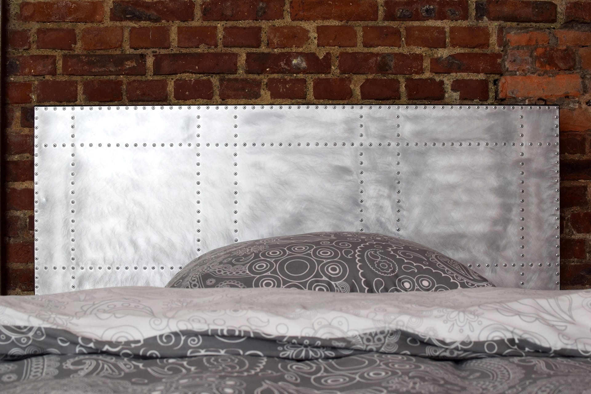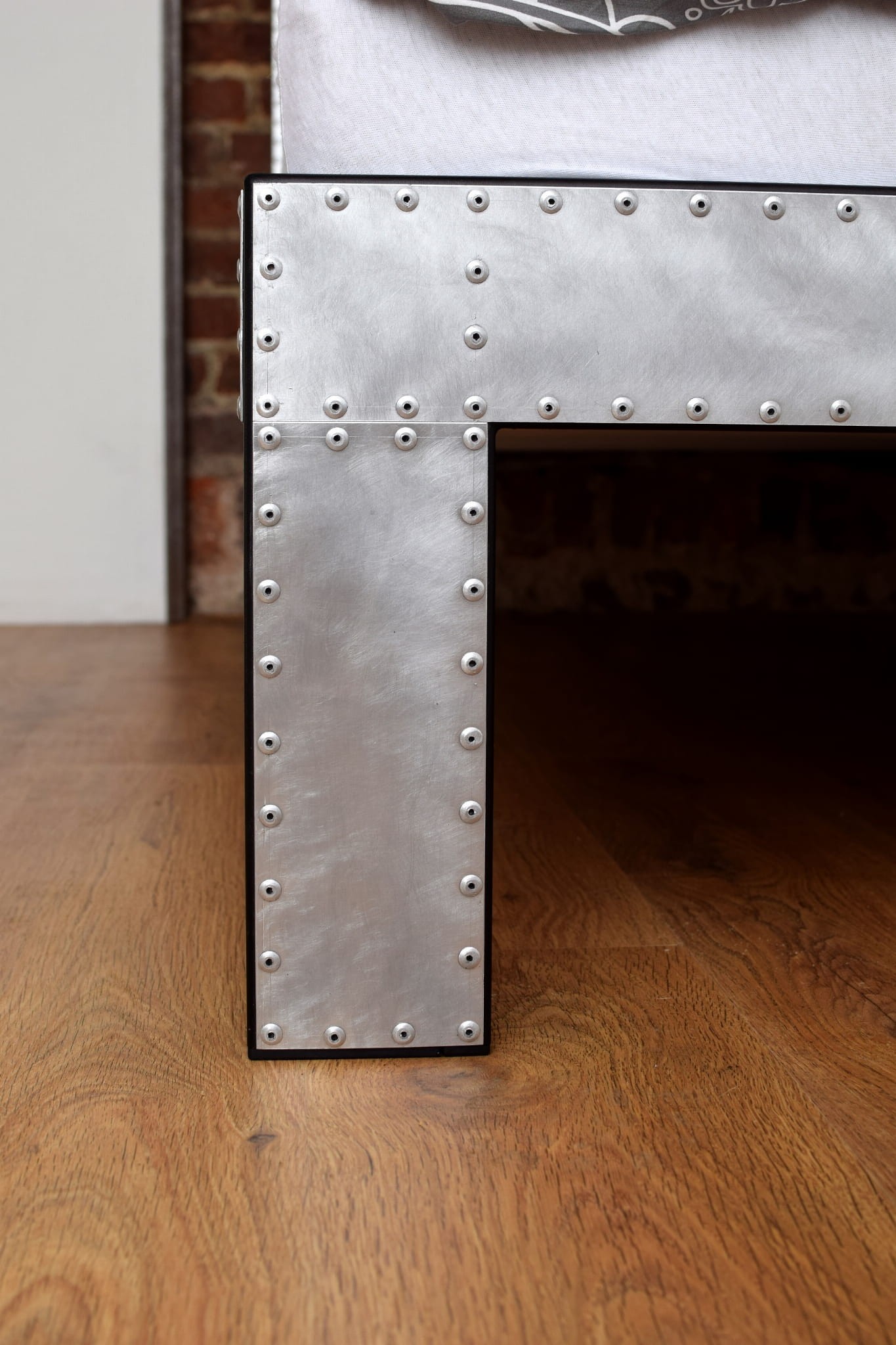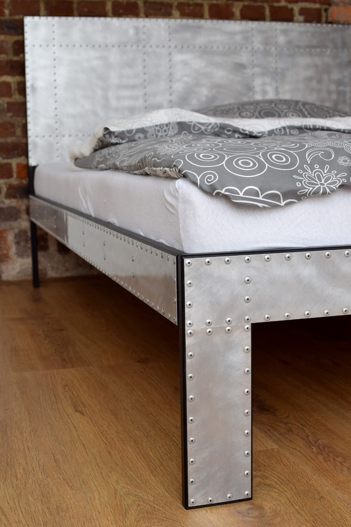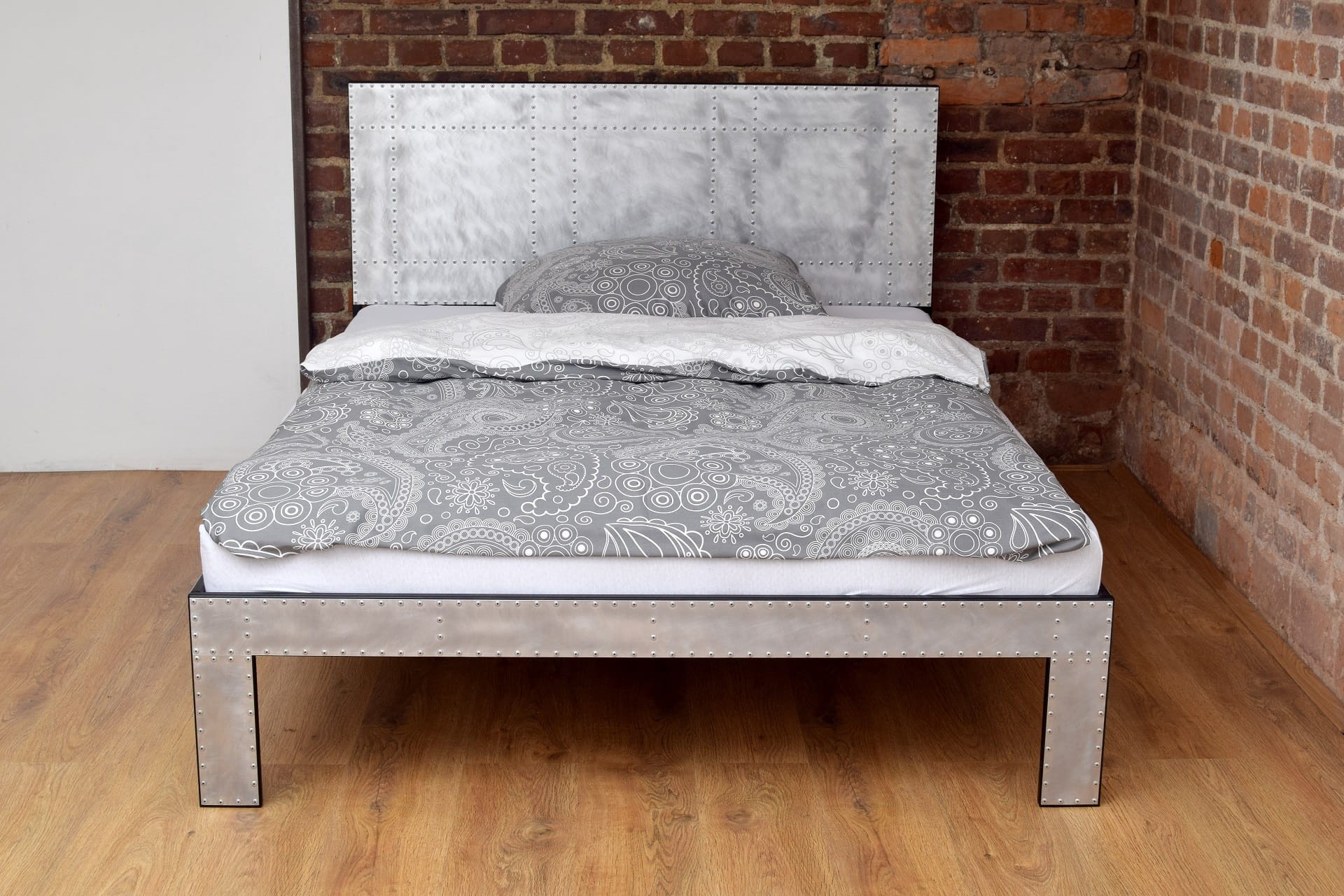 Loftalum Metalowe łóżko industrialne pokryte aluminium pokryte jest blachą aluminiową, zdobione nitami i zabezpieczone przed korozją.