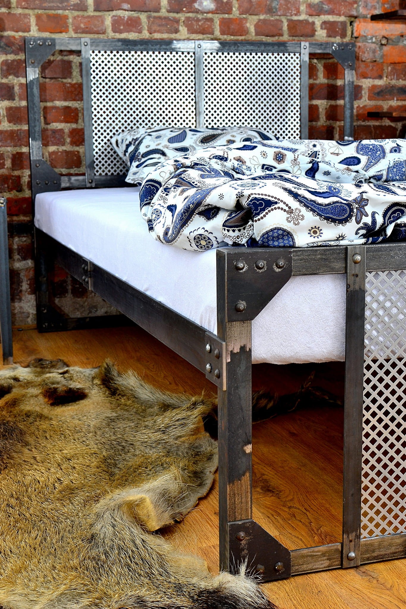 Łóżko metalowe LOFTBED z siatką mocny styl i solidna konstrukcja