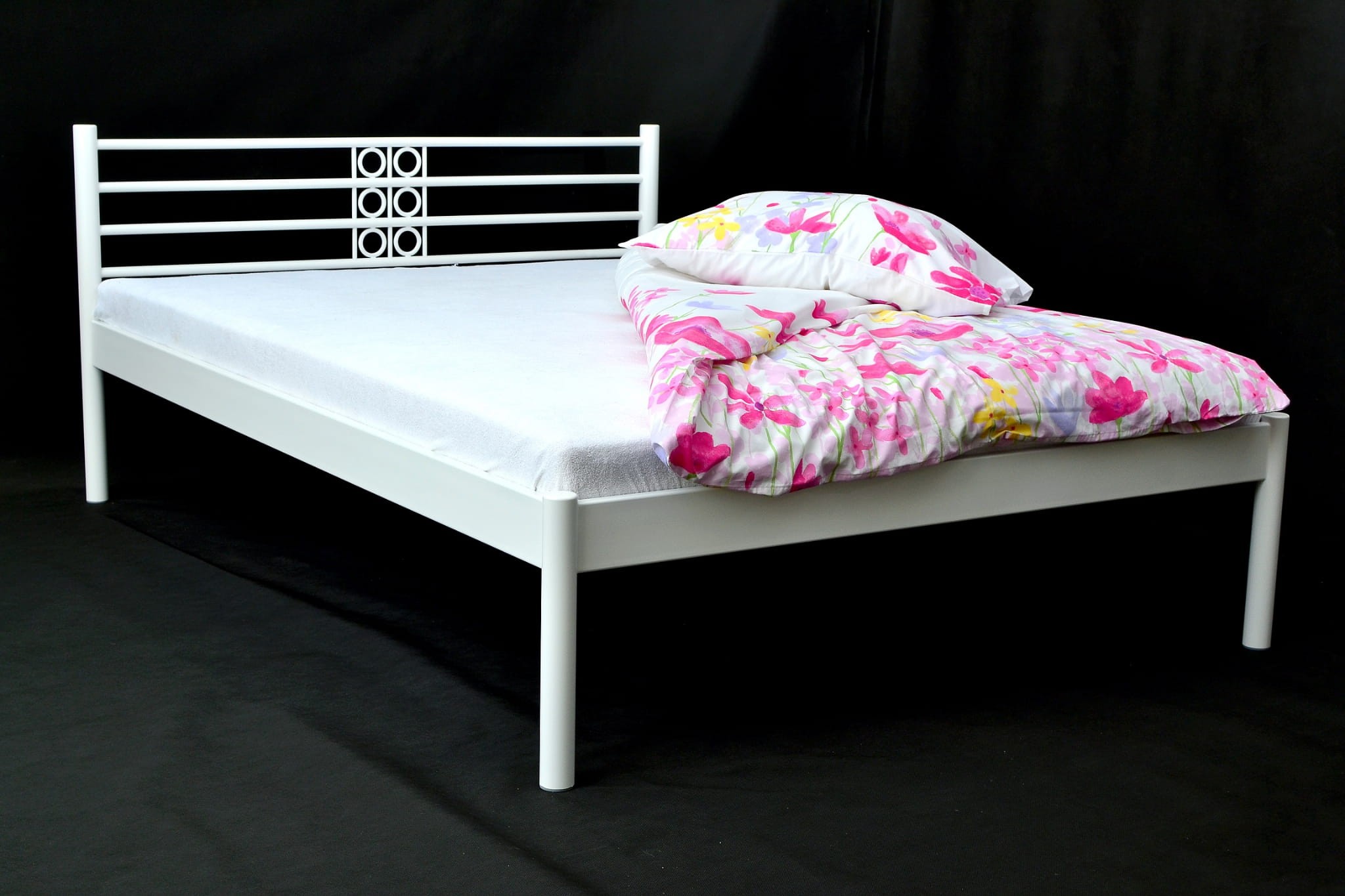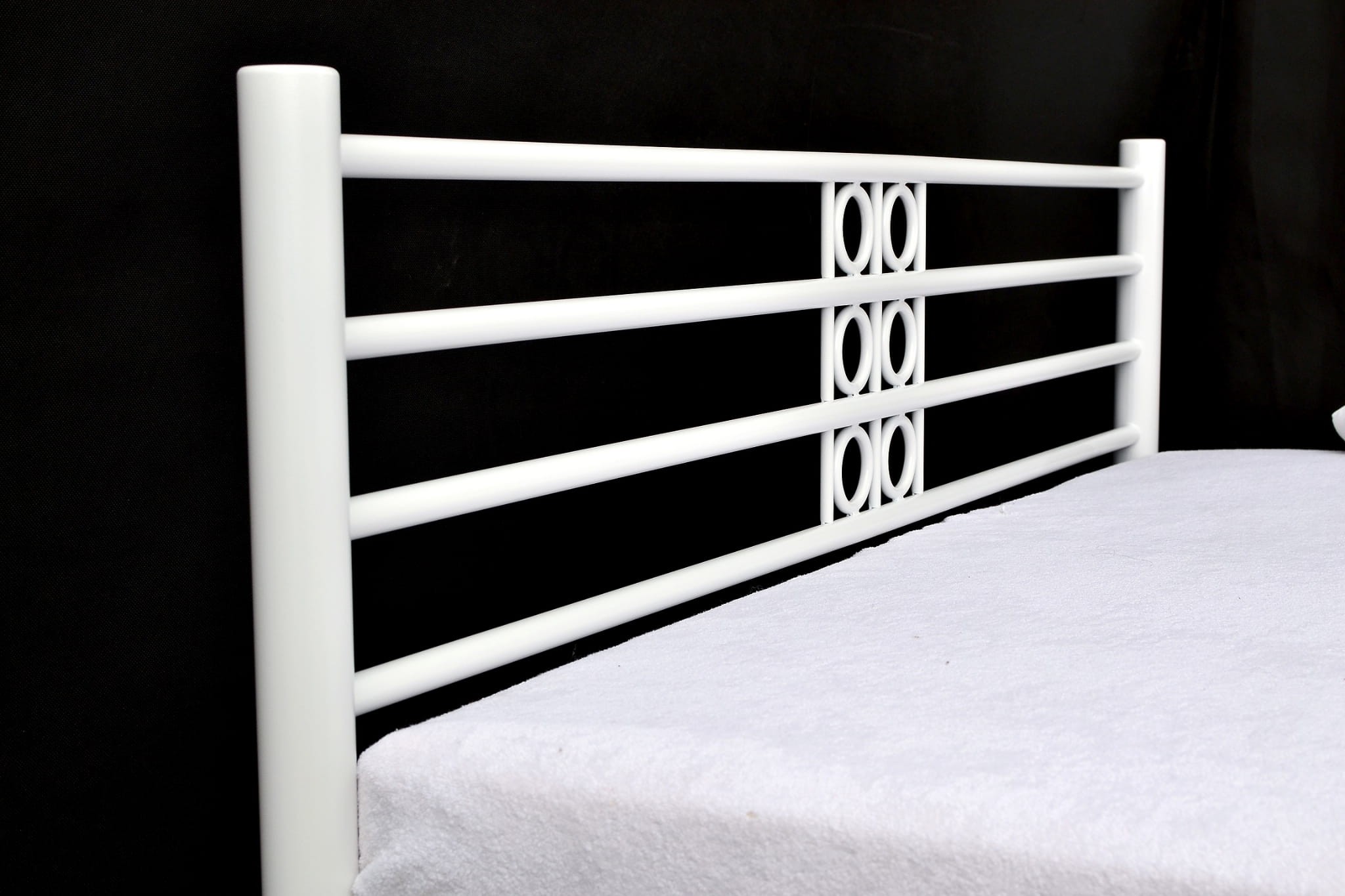 Na zdjęciu Łóżko metalowe RODAM w rozmiarze 140x200 cm w kolorze biały mat.