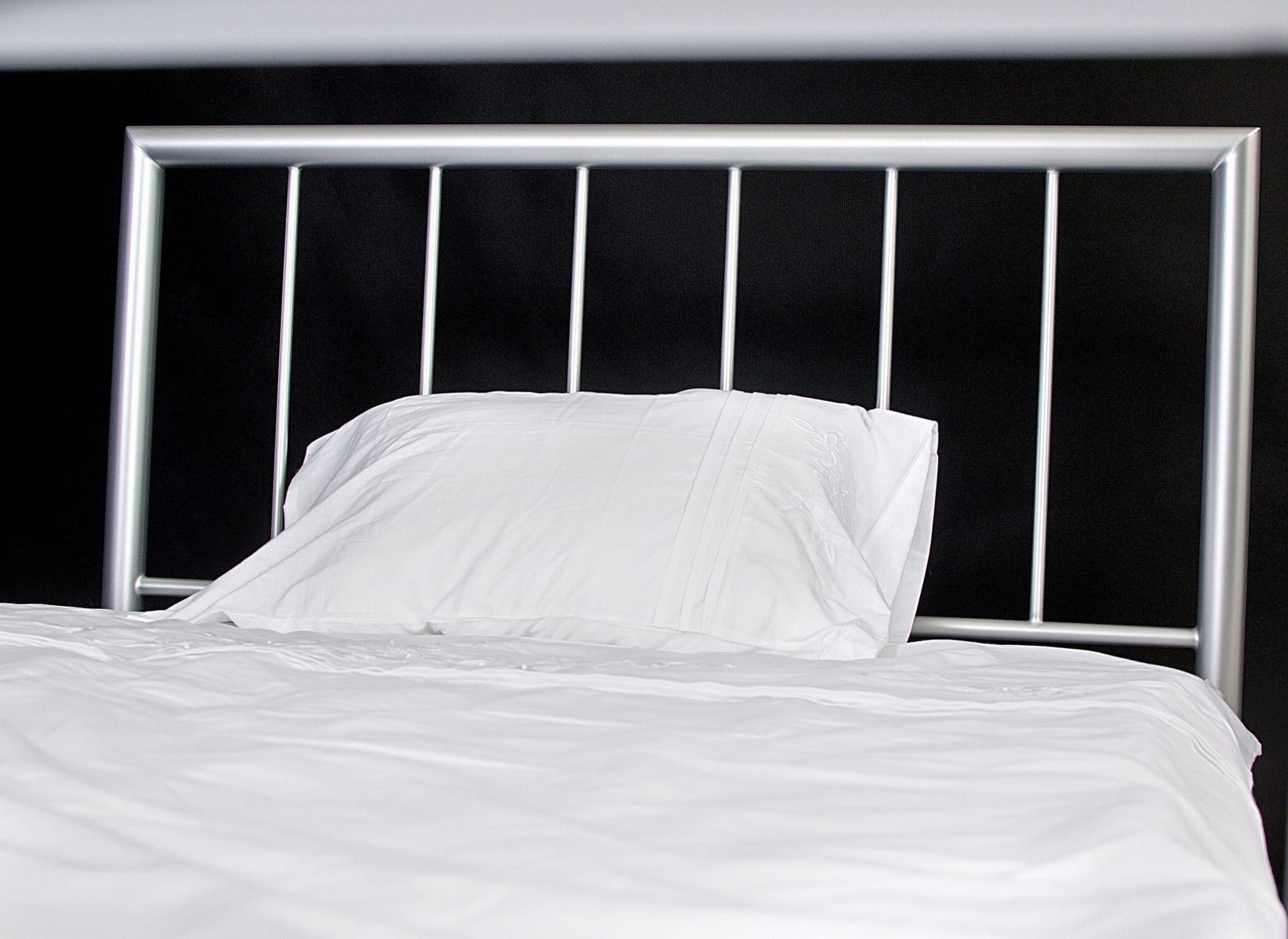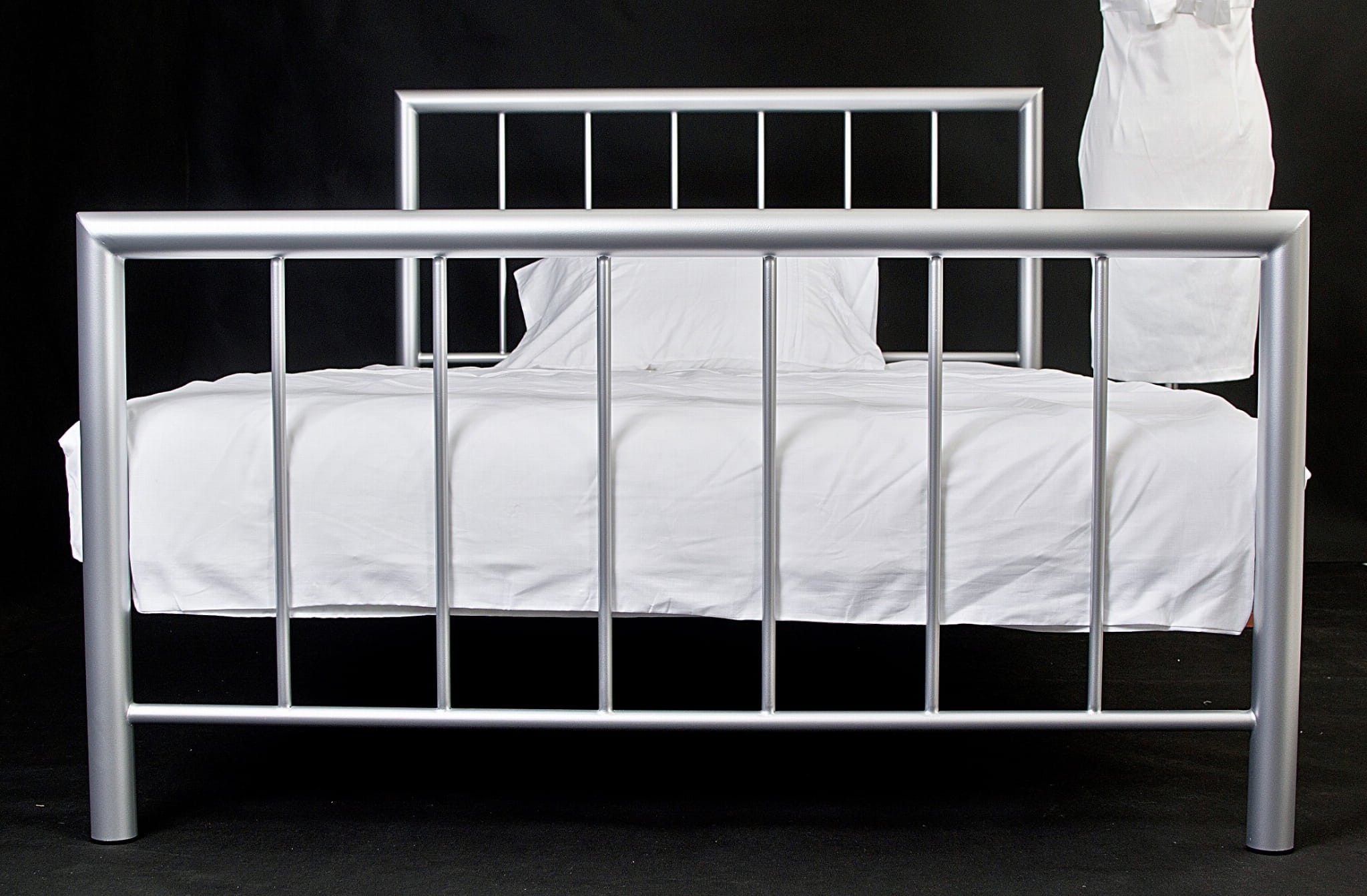 Na zdjęciu Łóżko metalowe ROMA w rozmiarze 120x200 cm w kolorze srebrnym.