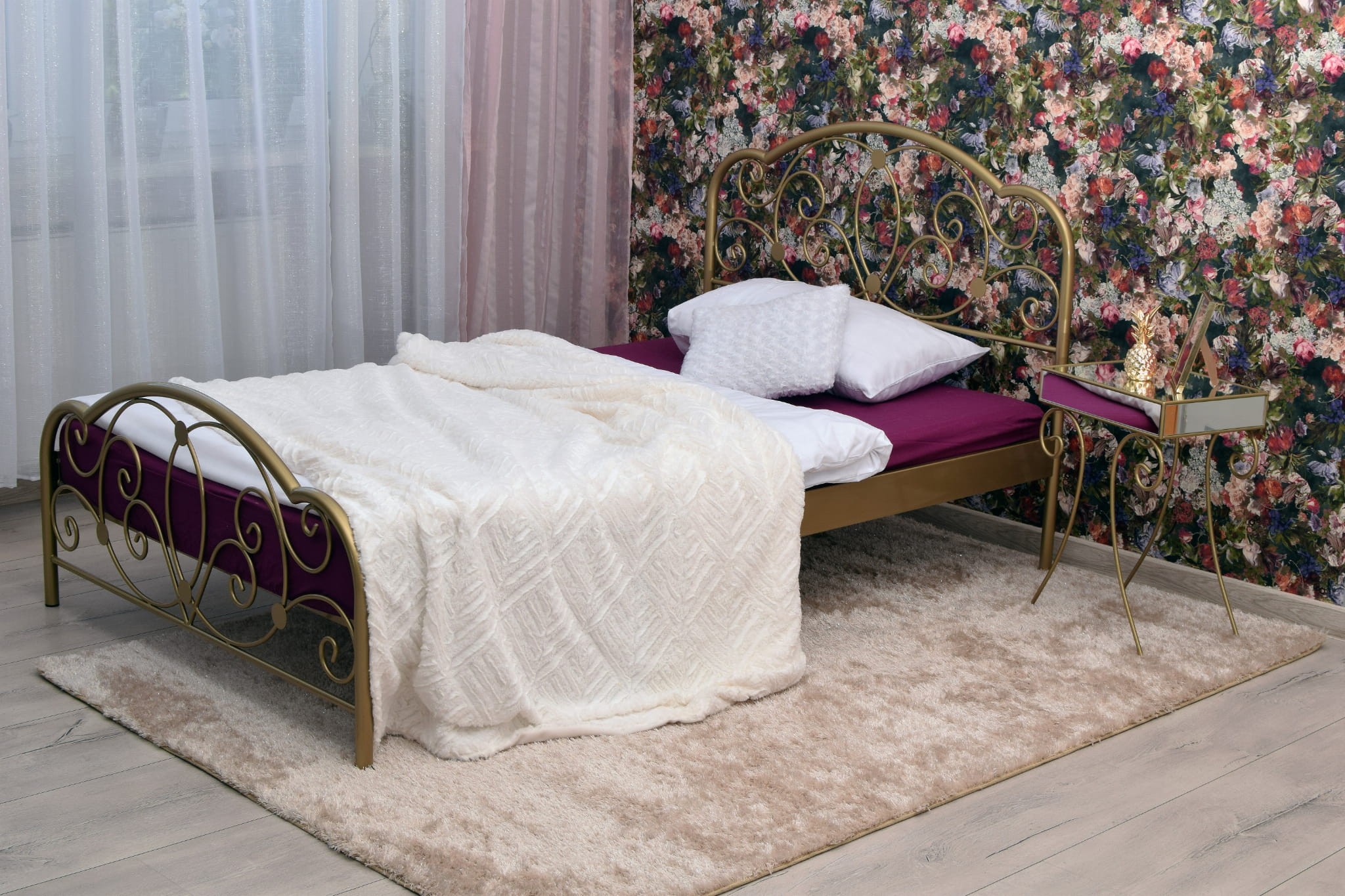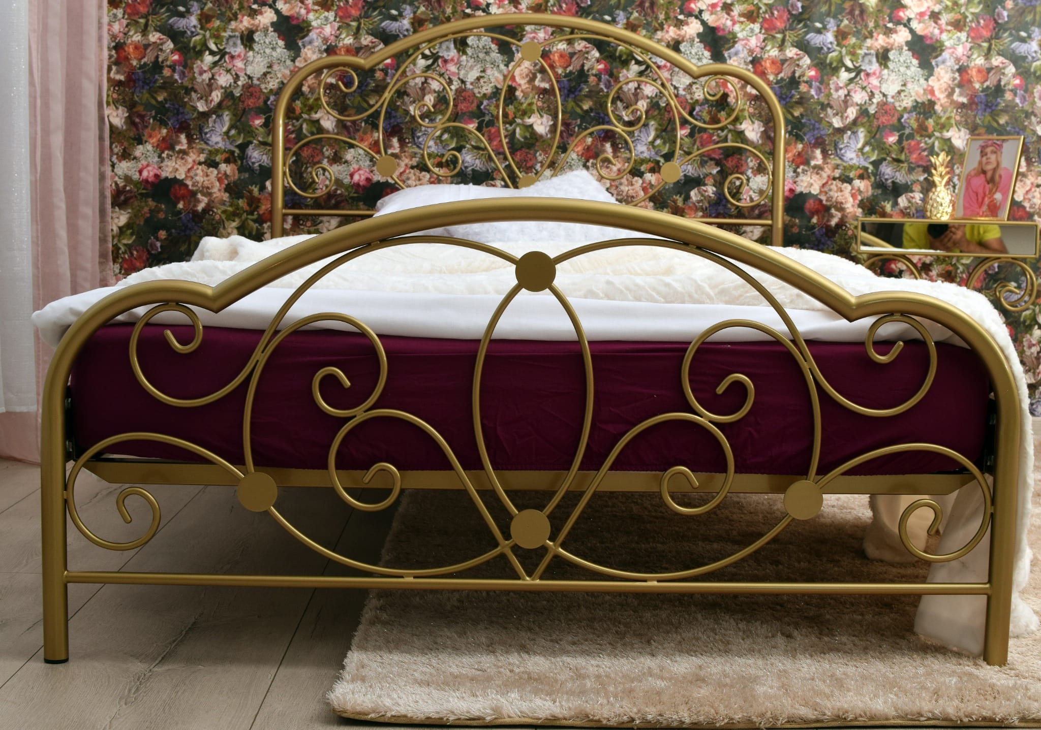 Łóżko metalowe Gold Glamour to fantastyczne połączenie elegancji i nowoczesnego designu, które sprawdzi się w sypialni w stylu glamour, w stylu romantycznym, a także w pięknych cygańskich sypialniach.