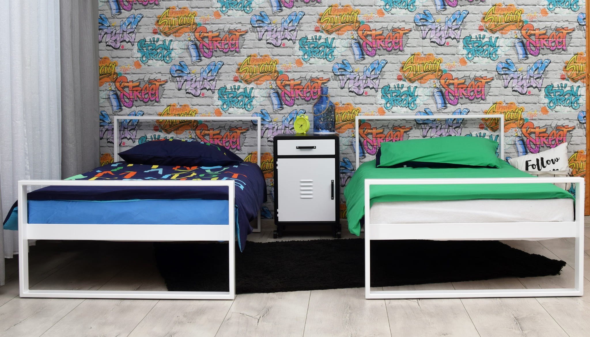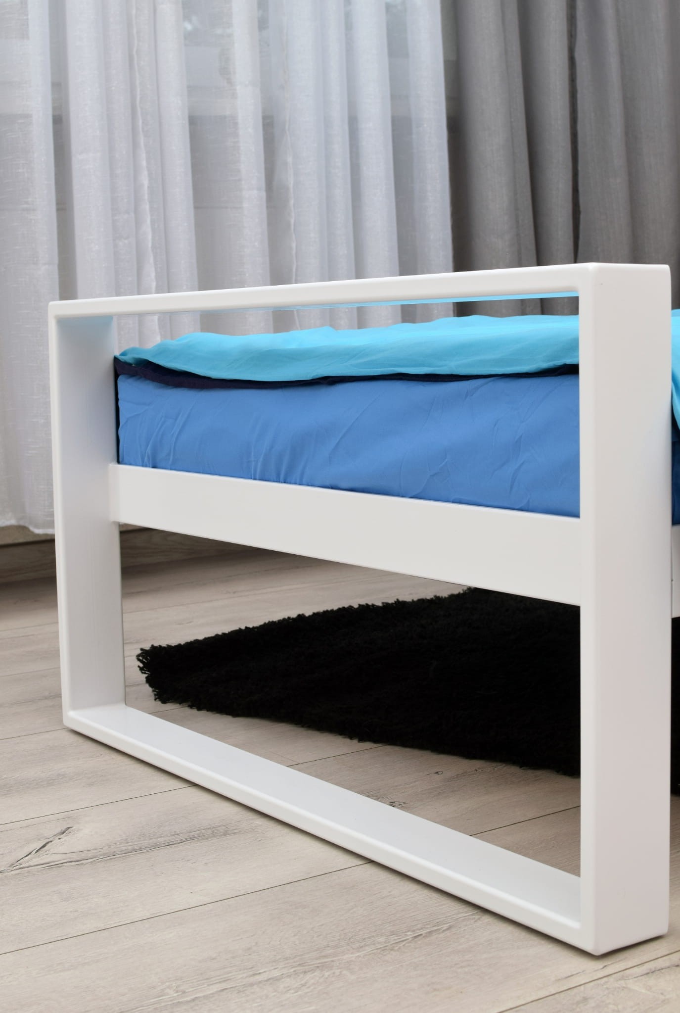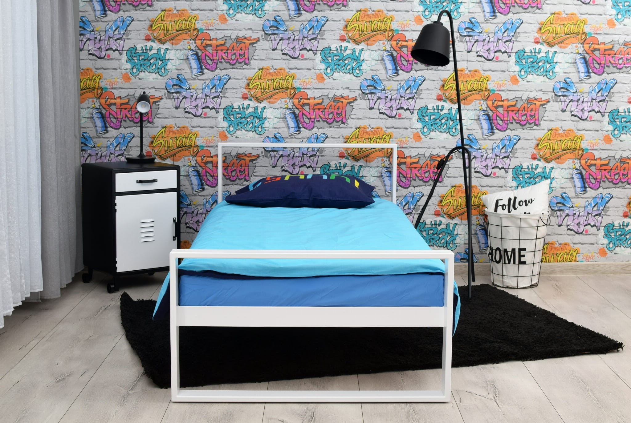 Młodzieżowe łóżko metalowe Mini Q to nowoczesne łóżko, które z racji swojej przestrzennej lekkości przepięknie zaprezentuje się nawet w tych najmniejszych blokowych sypialniach, a także tych na poddaszu.