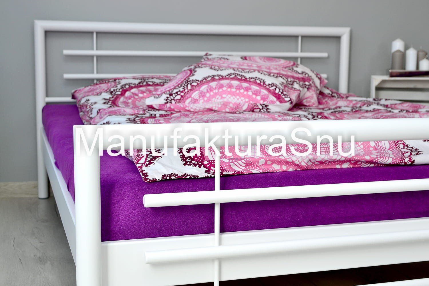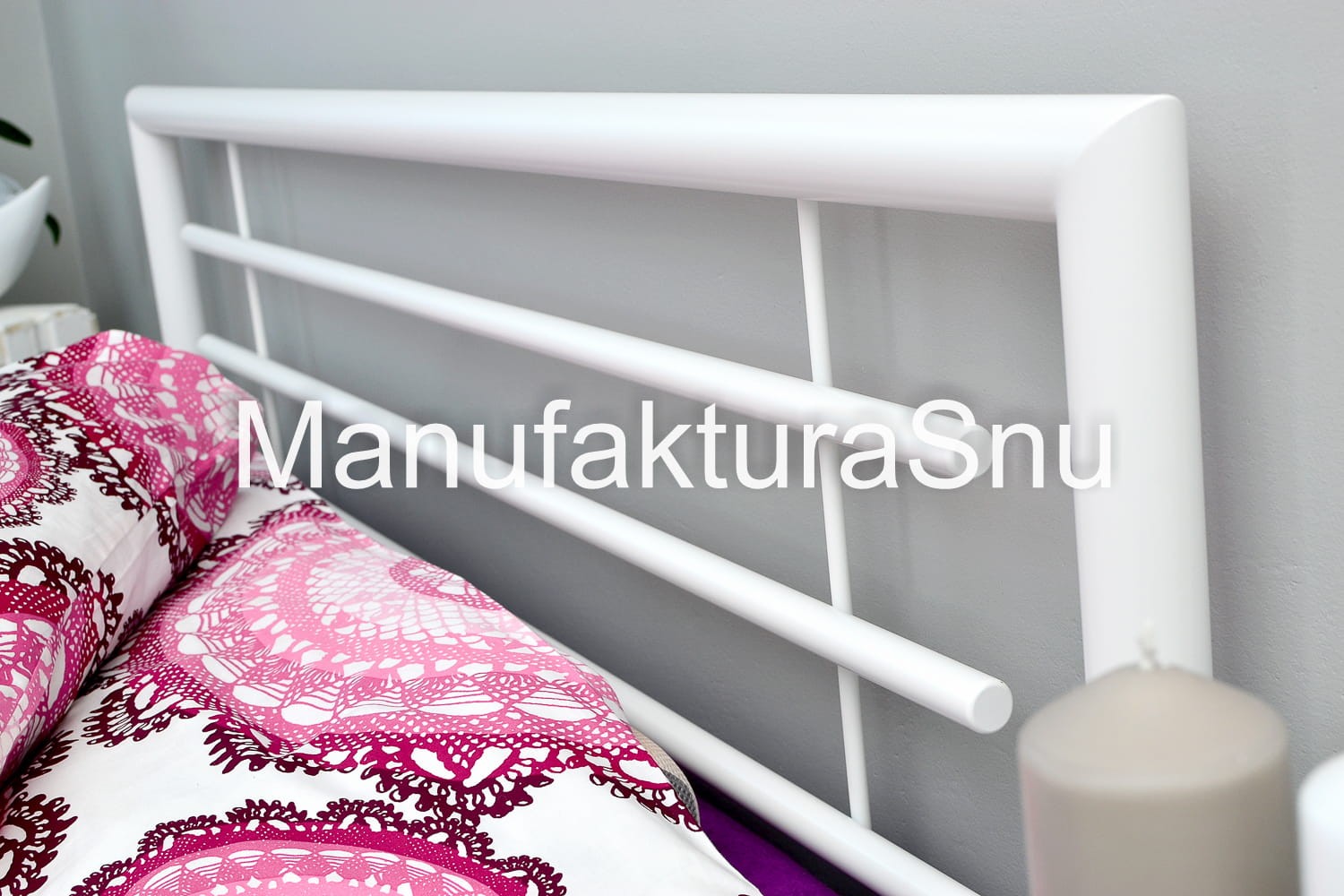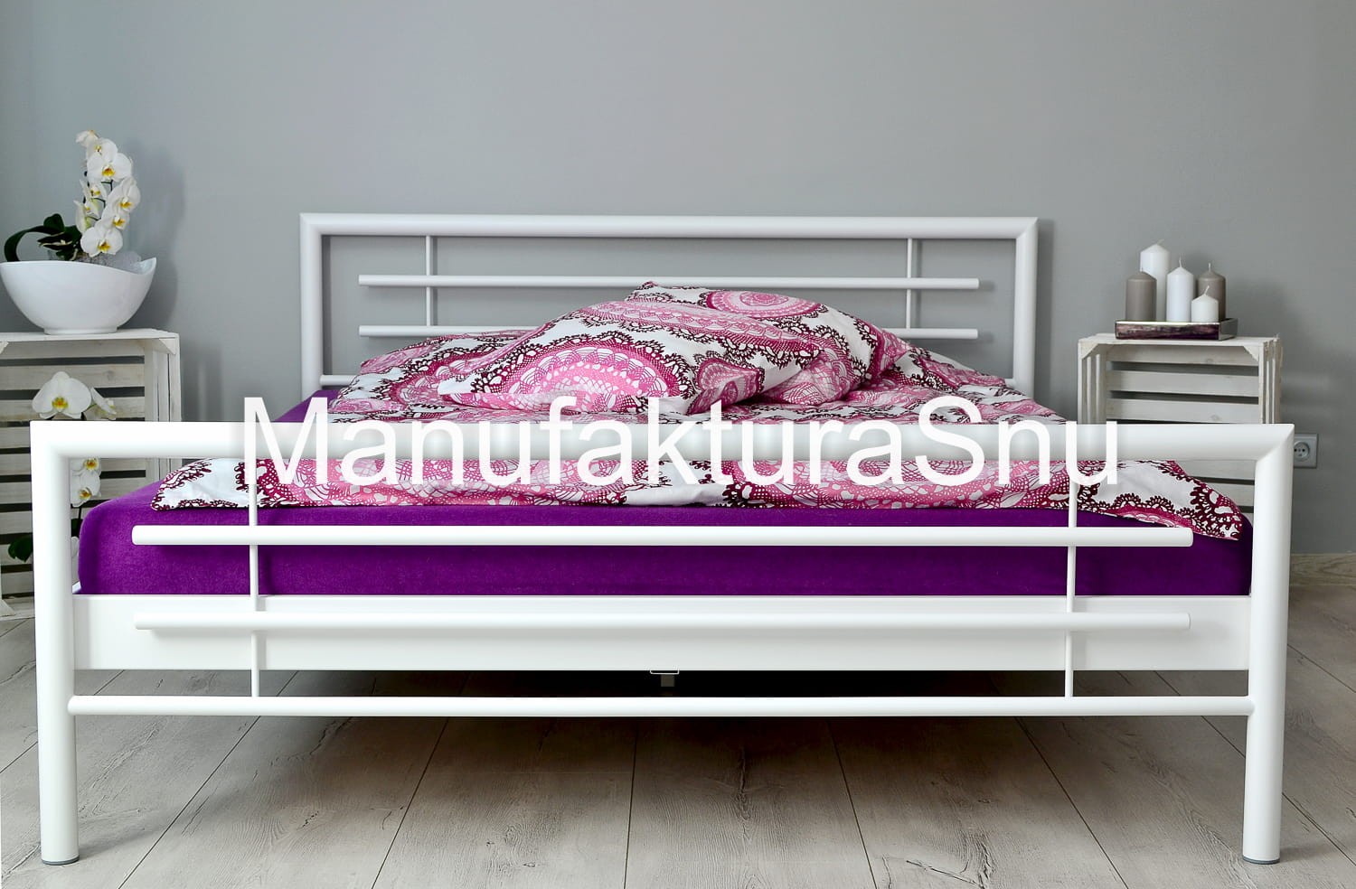 Na zdjęciu Nowoczesne łóżko metalowe LEGRO w rozmiarze 160x200 cm w kolorze białym.