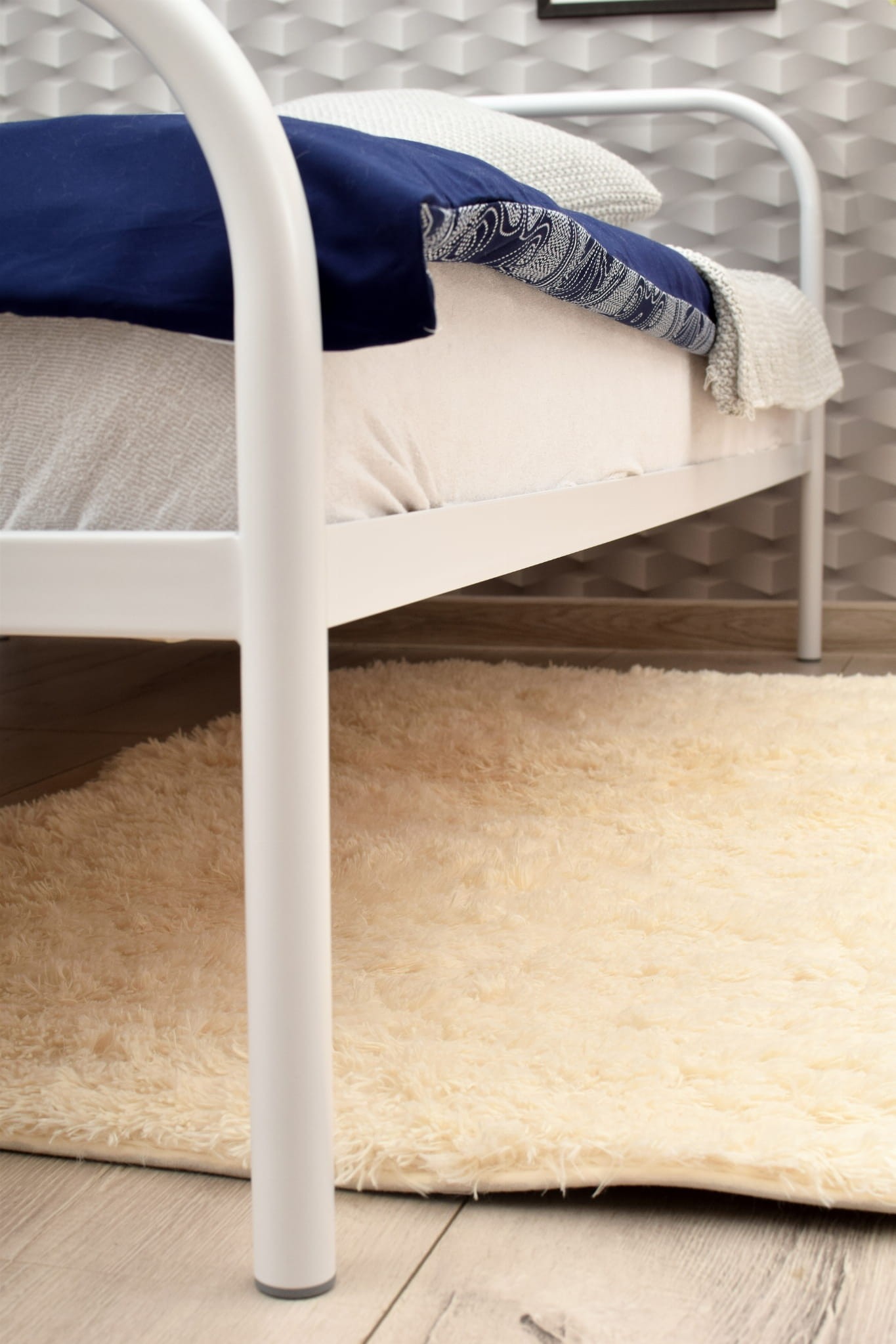 Łóżko wyposażone jest w drewniany pracujący stelaż, wszystkie elementy potrzebne do złożenia łóżka znajdują się w paczce, nogi zabezpieczone nakładkami, nie rysują paneli podłogowych, a spokojny sen zapewnia stabilna nieskrzypiąca rama łóżka.
