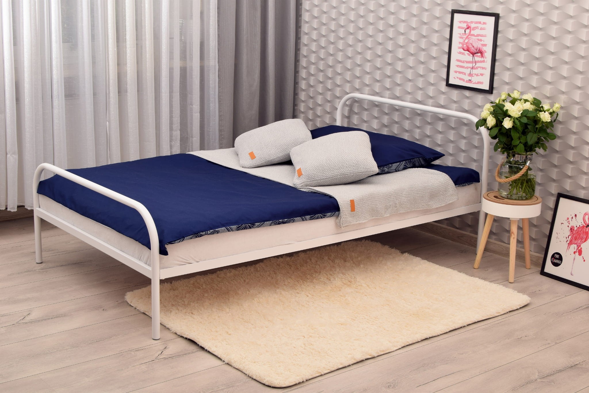 Pojedyncze proste nowoczesne i minimalistyczne łóżko metalowe POPI