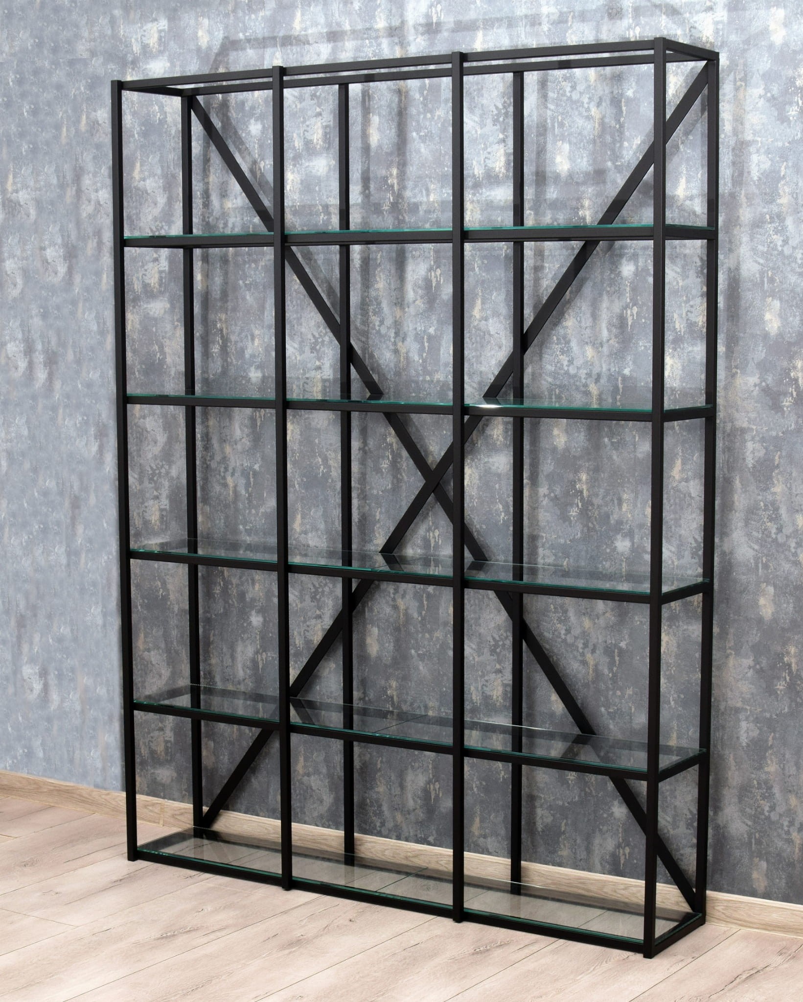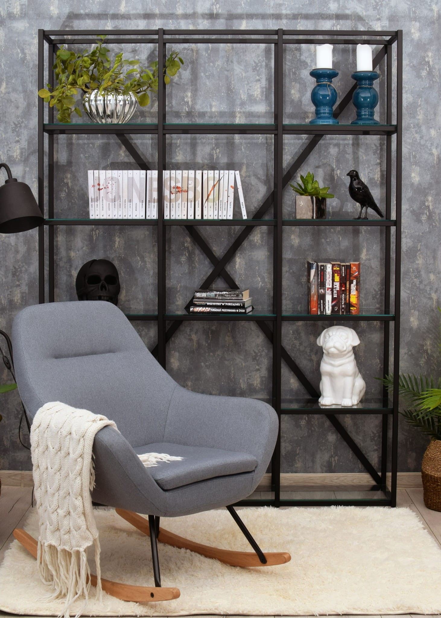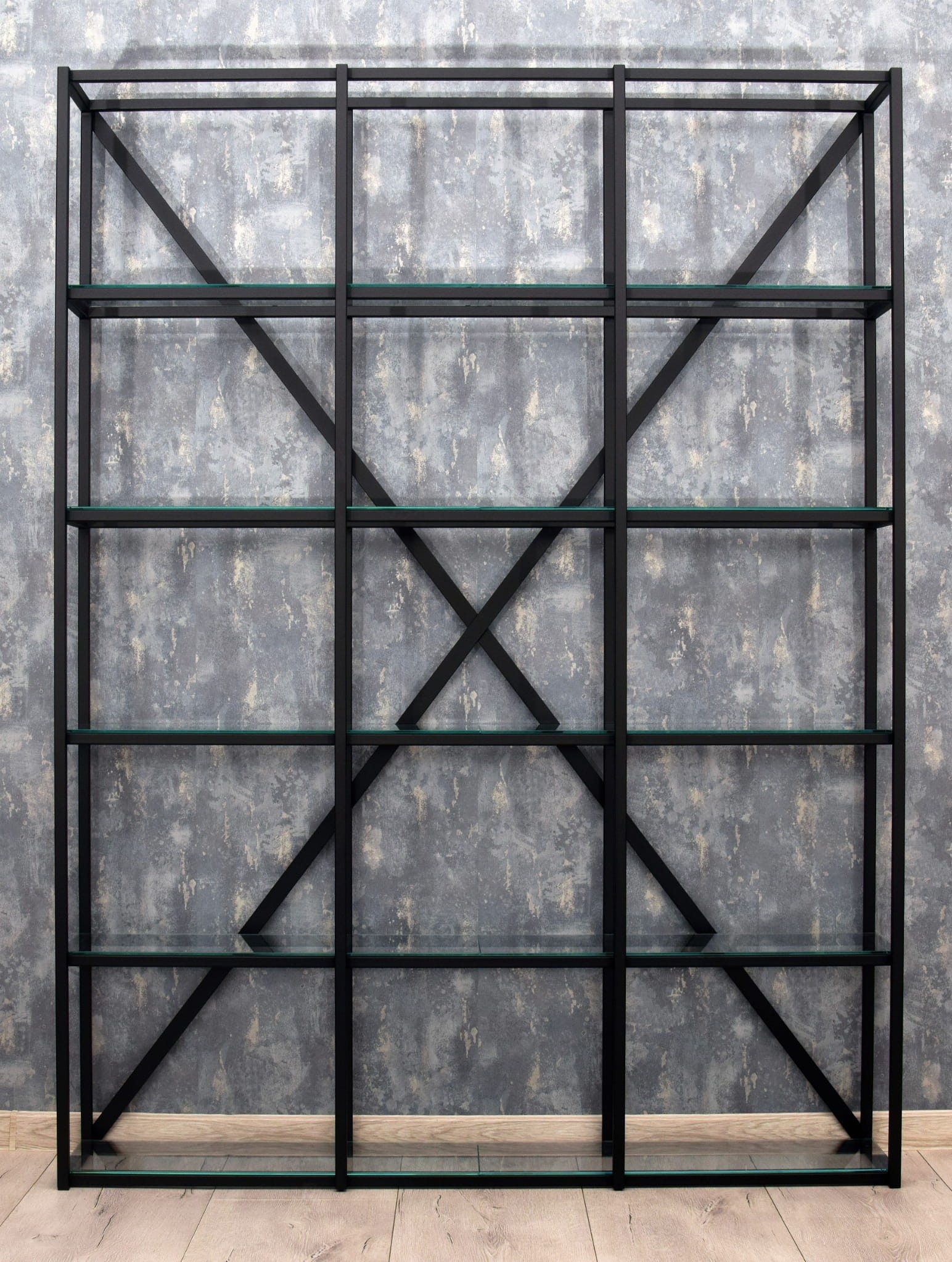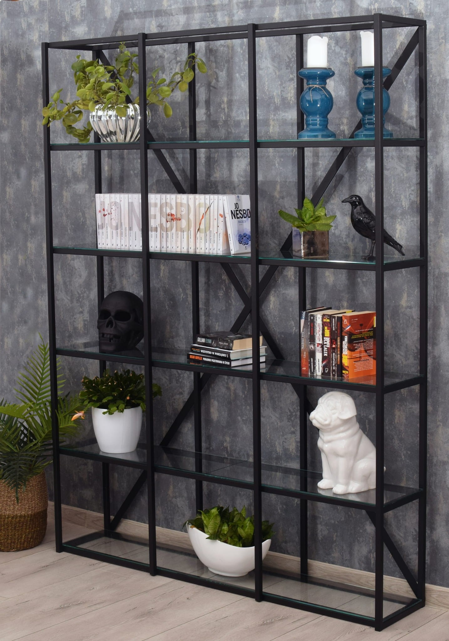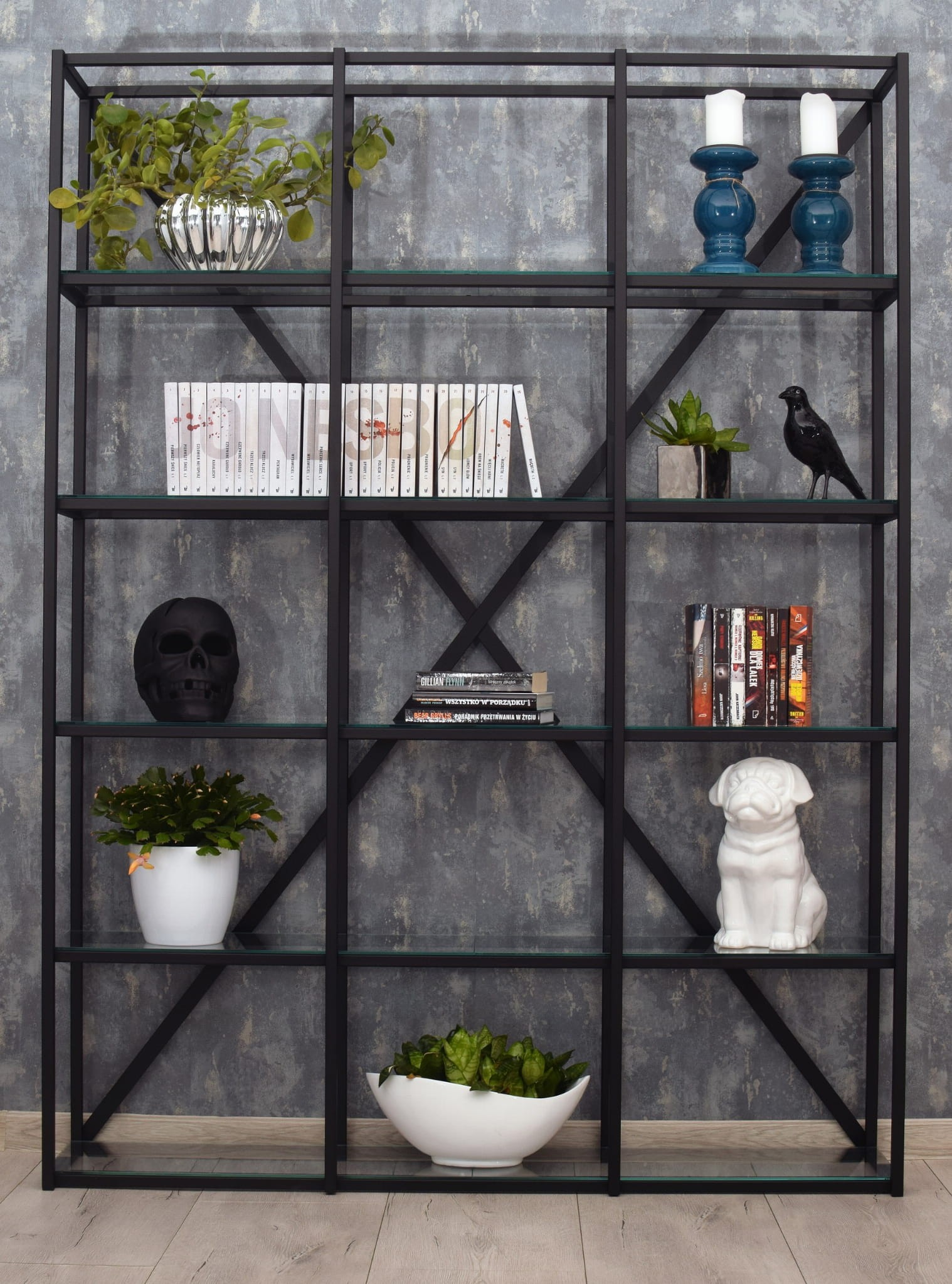Regał metalowy FAKTOR czarny nowoczesny regał do salonu biura minimalistyczny