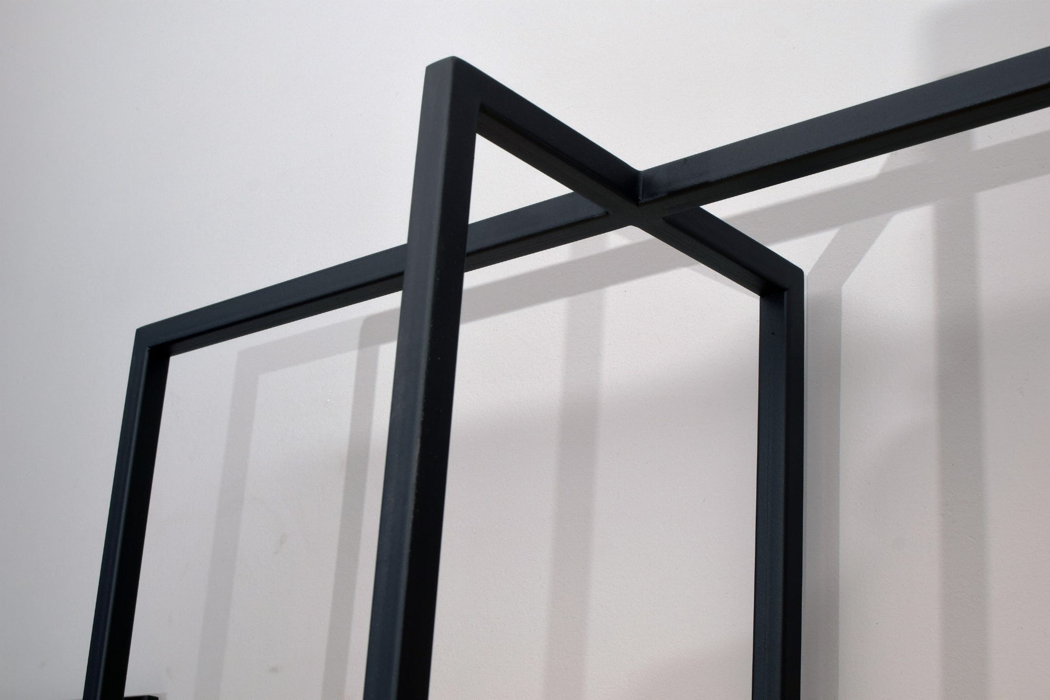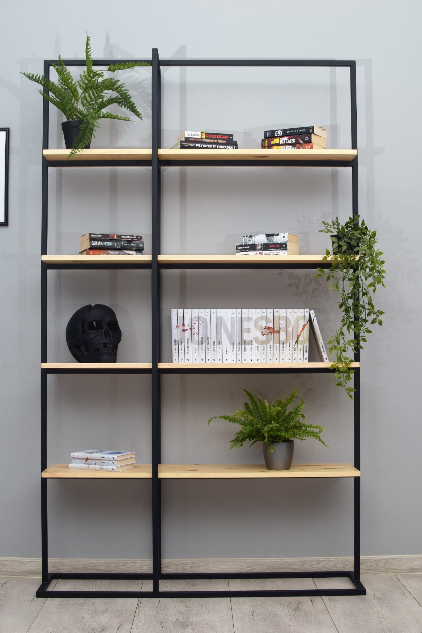 Regał metalowy na książki o bardzo nowoczesnym dizajnie. Pasuje do nowoczesnych wnętrz, wnętrz soft loft, czy industrialnych przestrzeni.