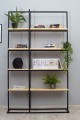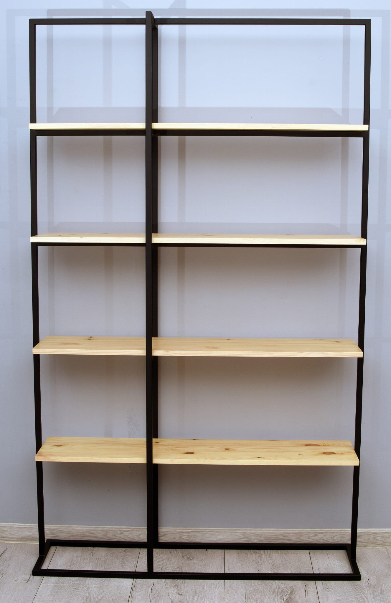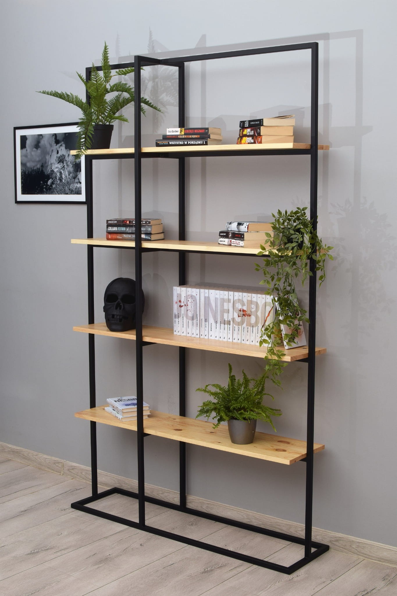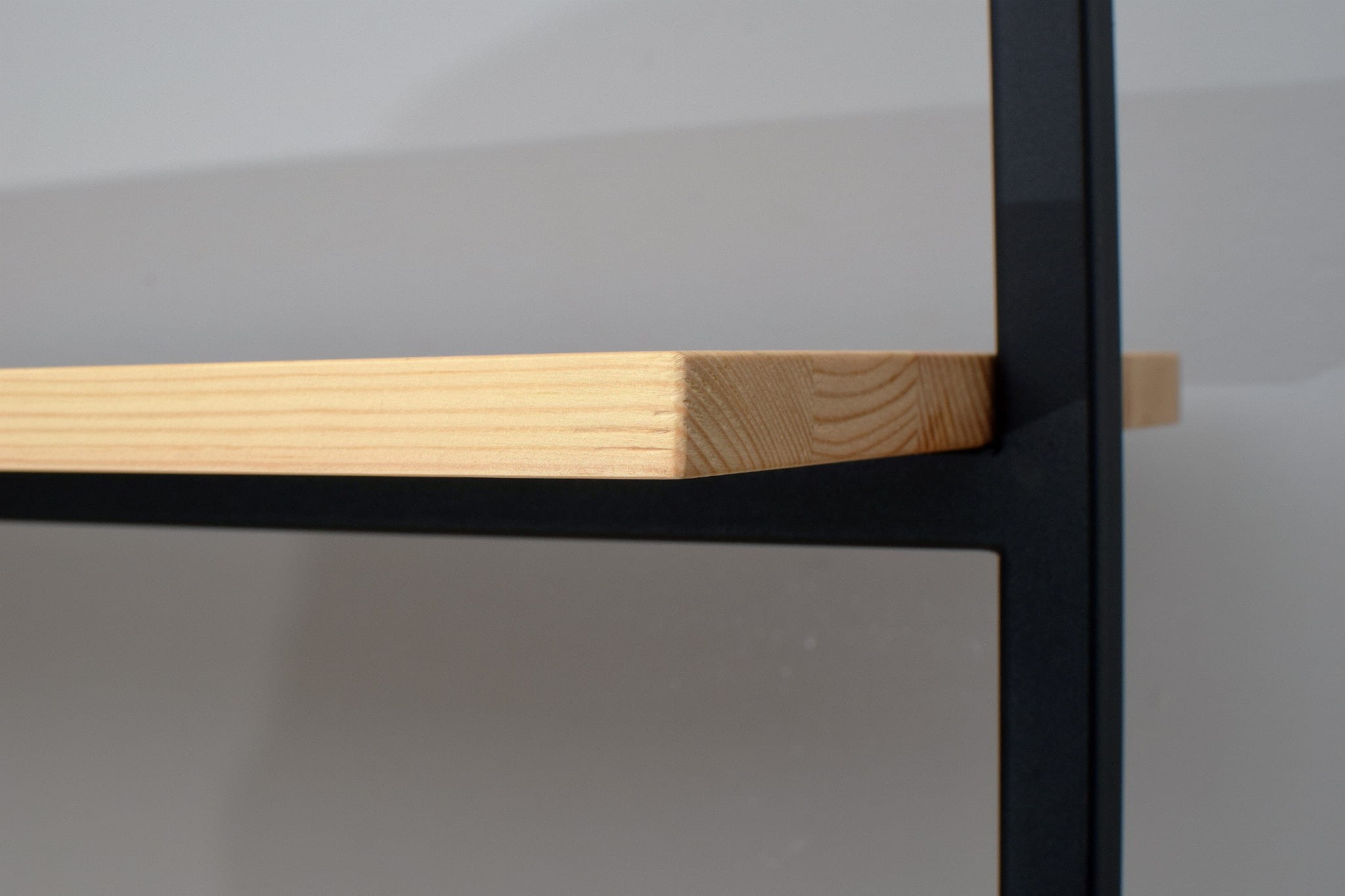 Simpli Metalowy regał na książki wykonany jest ręcznie z metalu i litego drewna sosnowego. Drewno zostało zabezpieczone matowym lakierem.